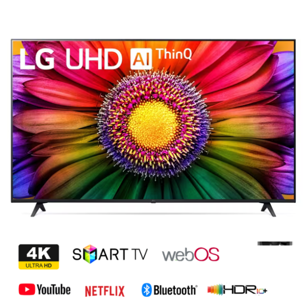 Bring the cinema into your living room with the LG UR80 Series 50″ Smart TV, designed to deliver stunning 4K UHD picture quality with lifelike colour, depth, and clarity. Powered by the α5 AI Processor Gen6, every frame is enhanced with AI 4K upscaling, ensuring even standard content looks sharper and more detailed. The ThinQ AI webOS Smart TV platform, paired with the intuitive Magic Remote, makes navigating apps and settings effortless. Enjoy a true cinematic experience at home with Active HDR, FILMMAKER Mode, and AI Sound, while the WOW Interface automatically optimizes audio when paired with an LG Sound Bar.