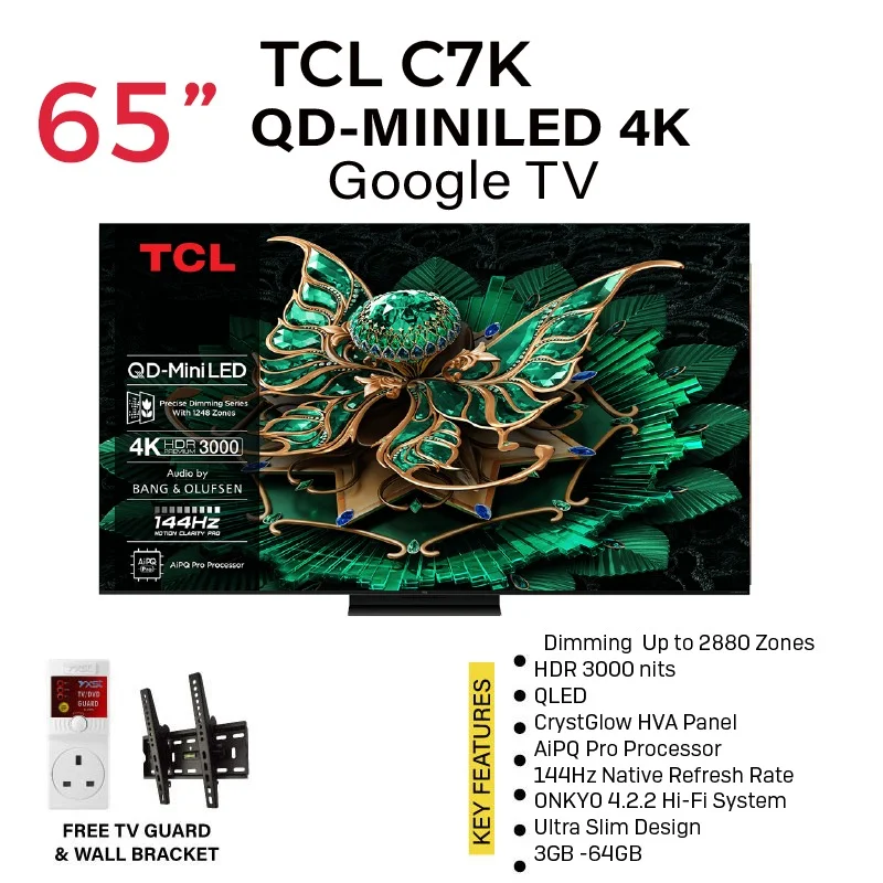 If you’re searching for a premium smart TV in Kenya, the TCL 65C7K 65″ QD-MiniLED Smart TV is one of the most advanced options available today. Combining cutting-edge Quantum Dot Mini-LED technology, a massive 65-inch 4K UHD display, and intelligent Google TV features, the TCL 65C7K promises an unparalleled viewing experience for movies, sports, gaming, and everyday entertainment.
